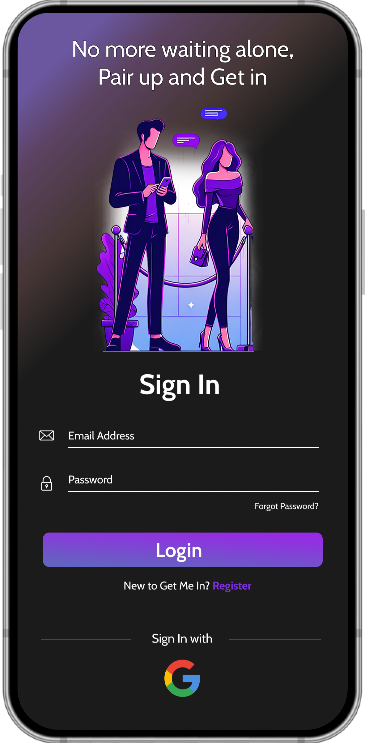 Get Me In changes that by connecting people heading to the same venue, allowing Seekers to find Companions who can help them enter together.