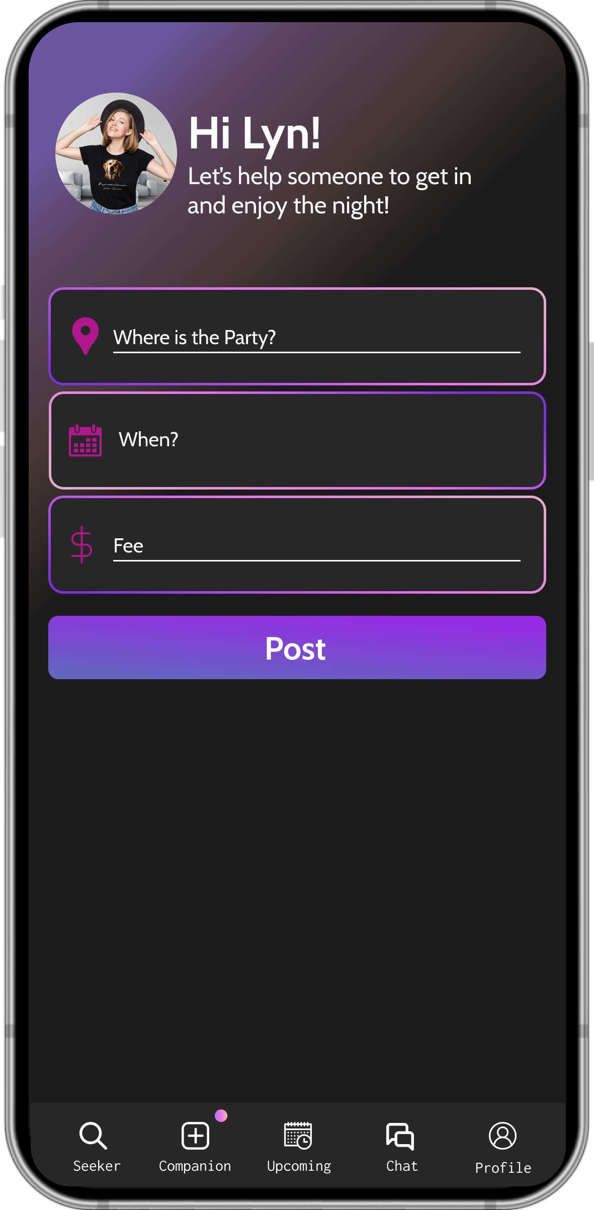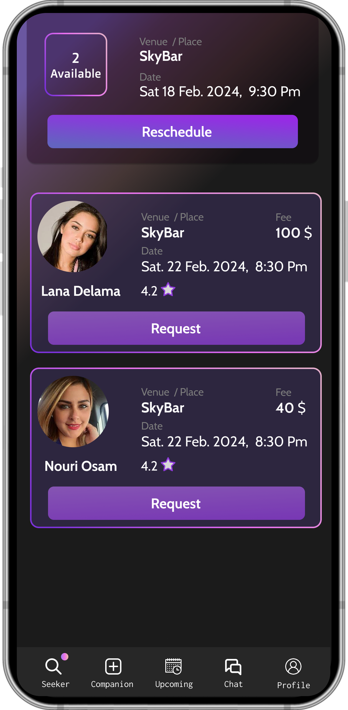 As a companion, you receive requests from seekers heading to the same venue. You decide which ones to accept, it’s always your choice. Once you meet and help them get in, your part is done. You’re not expected or obliged to stay with them for the night.